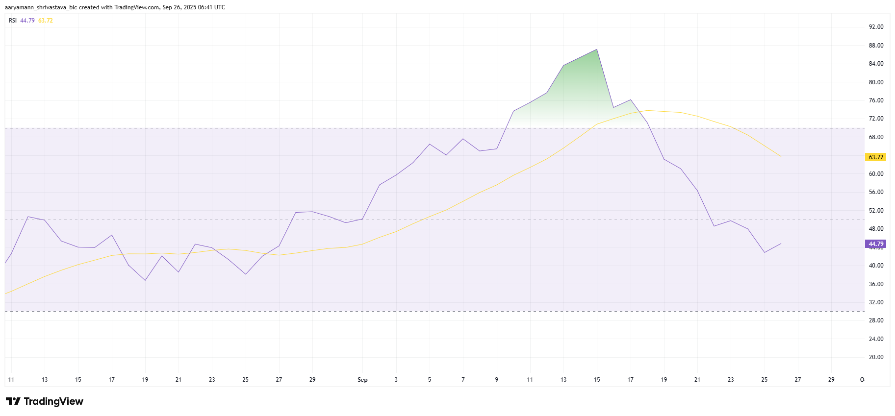 The Relative Strength Index (RSI) shows clear signs of deteriorating market sentiment. The indicator has slipped below the neutral 50.0 mark and now sits at 44.79. Such levels signal rising bearishness, leaving little room for a quick rebound in PUMP’s price.