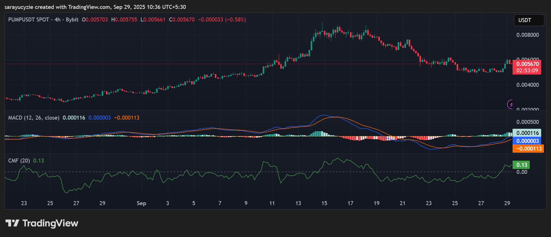 - Pump.fun (PUMP) is trading at around the $0.0057 zone.