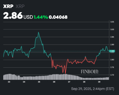 At press time, XRP was trading at $2.86 after rallying almost 3% in the past 24 hours, while gaining about 1.4% on the weekly timeframe.