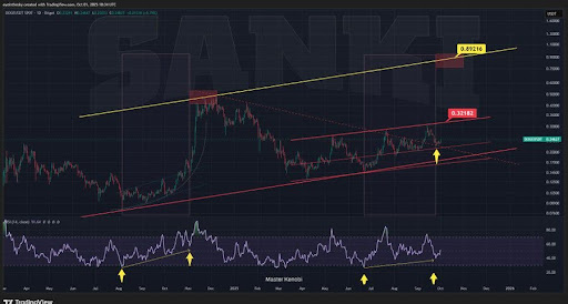 According to his analysis, this support has provided DOGE with the foundation needed to sustain its bullish structure. With the current momentum, the price now looks set to make another attempt at retesting the $0.32 level, a key resistance zone that could dictate the next major move for the token.