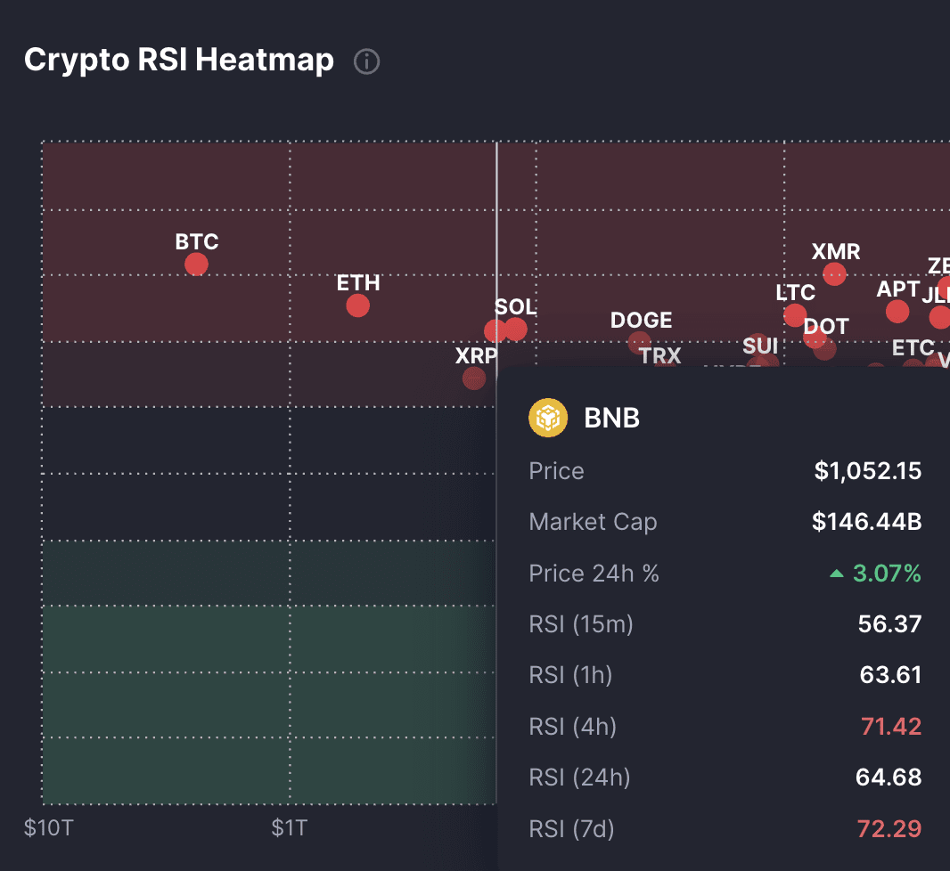 BNB has turned major resistance levels into support, including the 50-week and 100-week EMAs, adding strength to its bullish trend. The RSI sits at 64.68, showing the token is not yet overbought and still has room to climb.