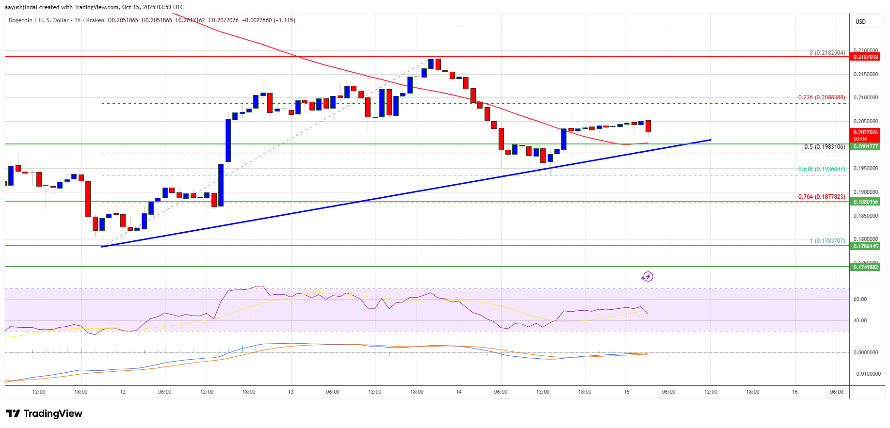- DOGE price started a fresh upward move above $0.20 and $0.2050.