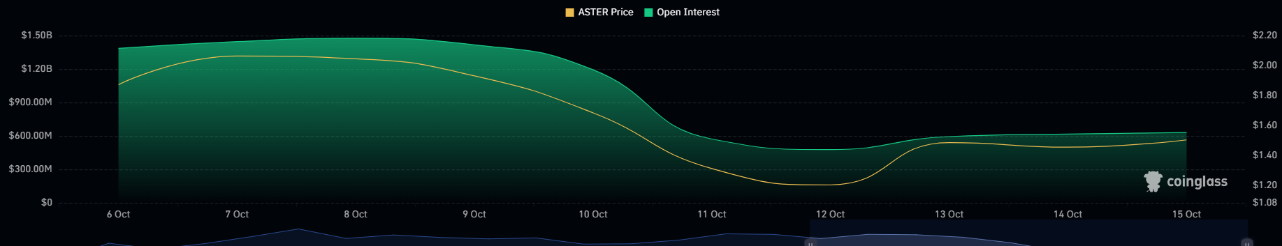Meanwhile, data from CoinGlass also provides an interesting picture. Aster’s derivatives volume fell 8.58% to $3.29 billion, but open interest rose 4.73% to US$614.97 million.