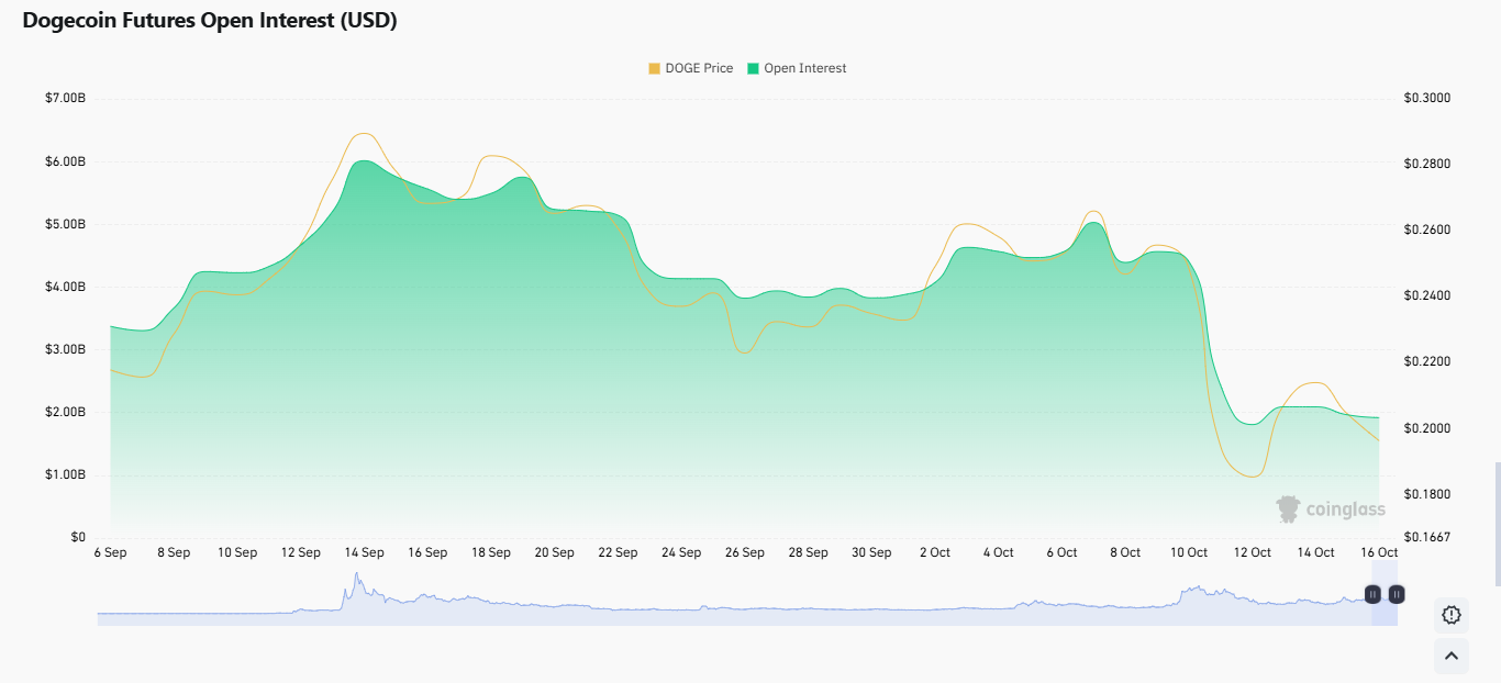The open interest (OI) in Dogecoin futures reached a high of around $6.5 billion on September 14 and then declined slowly until the end of the month, according to data from the derivatives analytics platform CoinGlass.