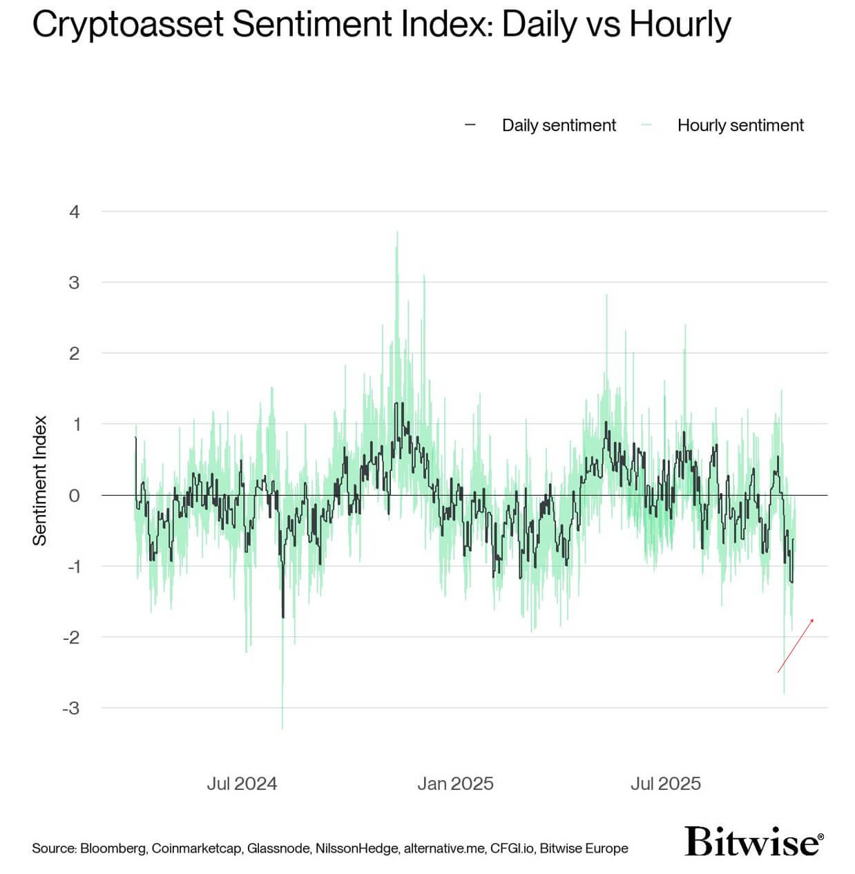 Despite the uptick, Bitwise’s Cryptoasset Sentiment Index still signals a broadly bearish posture, with readings consistent with what analysts call a “high-risk, high-reward” setup for Bitcoin.