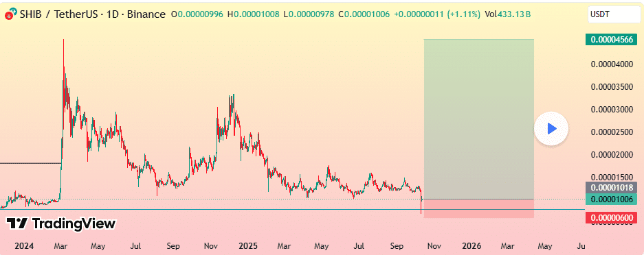 Meanwhile, uncertainty lingers over whether Shiba Inu will revisit its October 10 low of $0.0000074 in the coming weeks. A recent analysis by market watcher Trades0028 on TradingView indicates that SHIB could potentially drop below this level to around $0.000006.