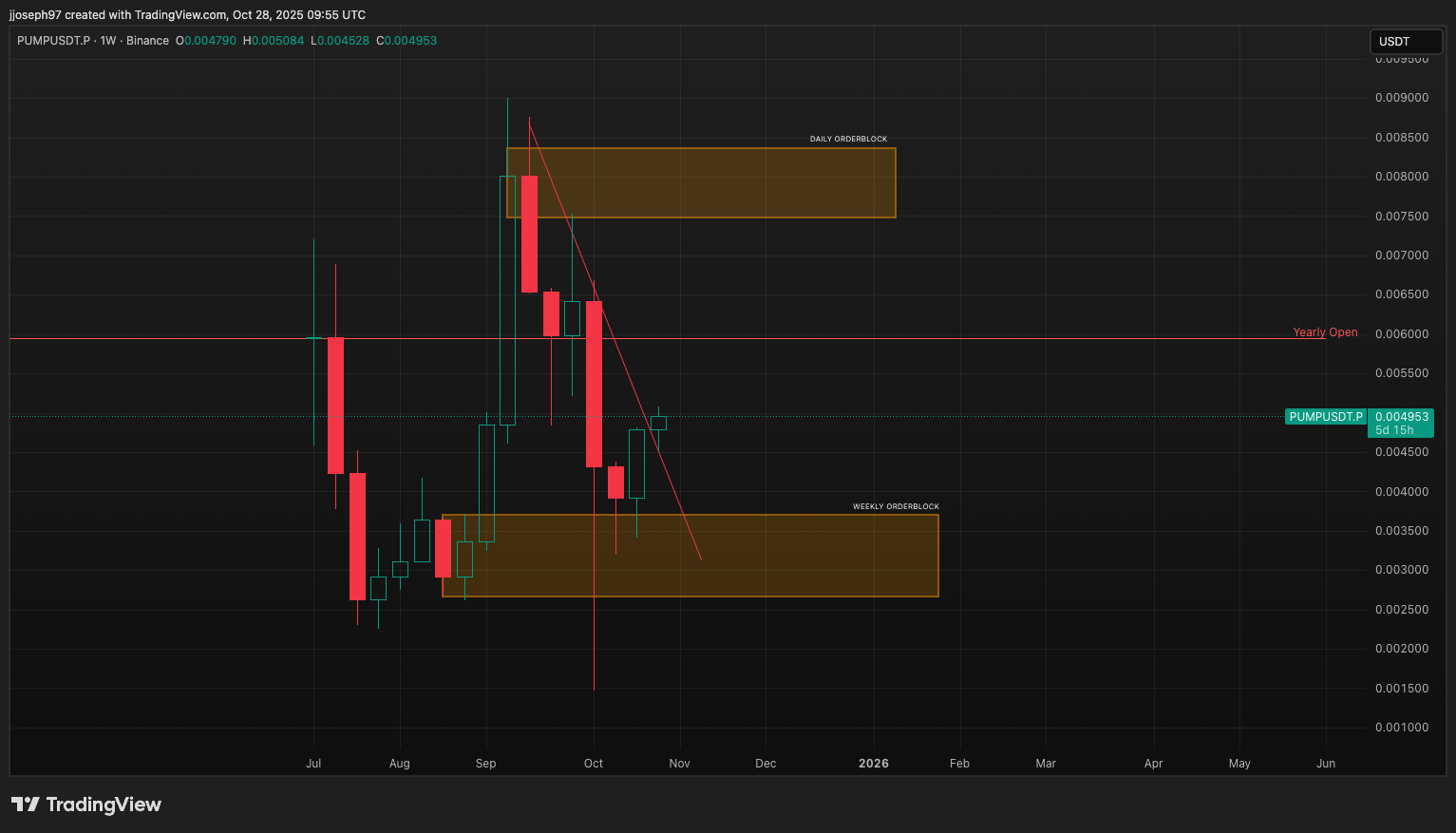 • After retracing to the weekly order block from its all-time highs, PUMP is now showing strong momentum as it looks to break through the weekly downward resistance.