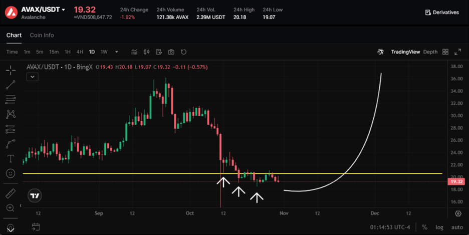 AVAX must maintain support above $19.20 and reclaim the $21 region with strong volume to confirm a reversal.