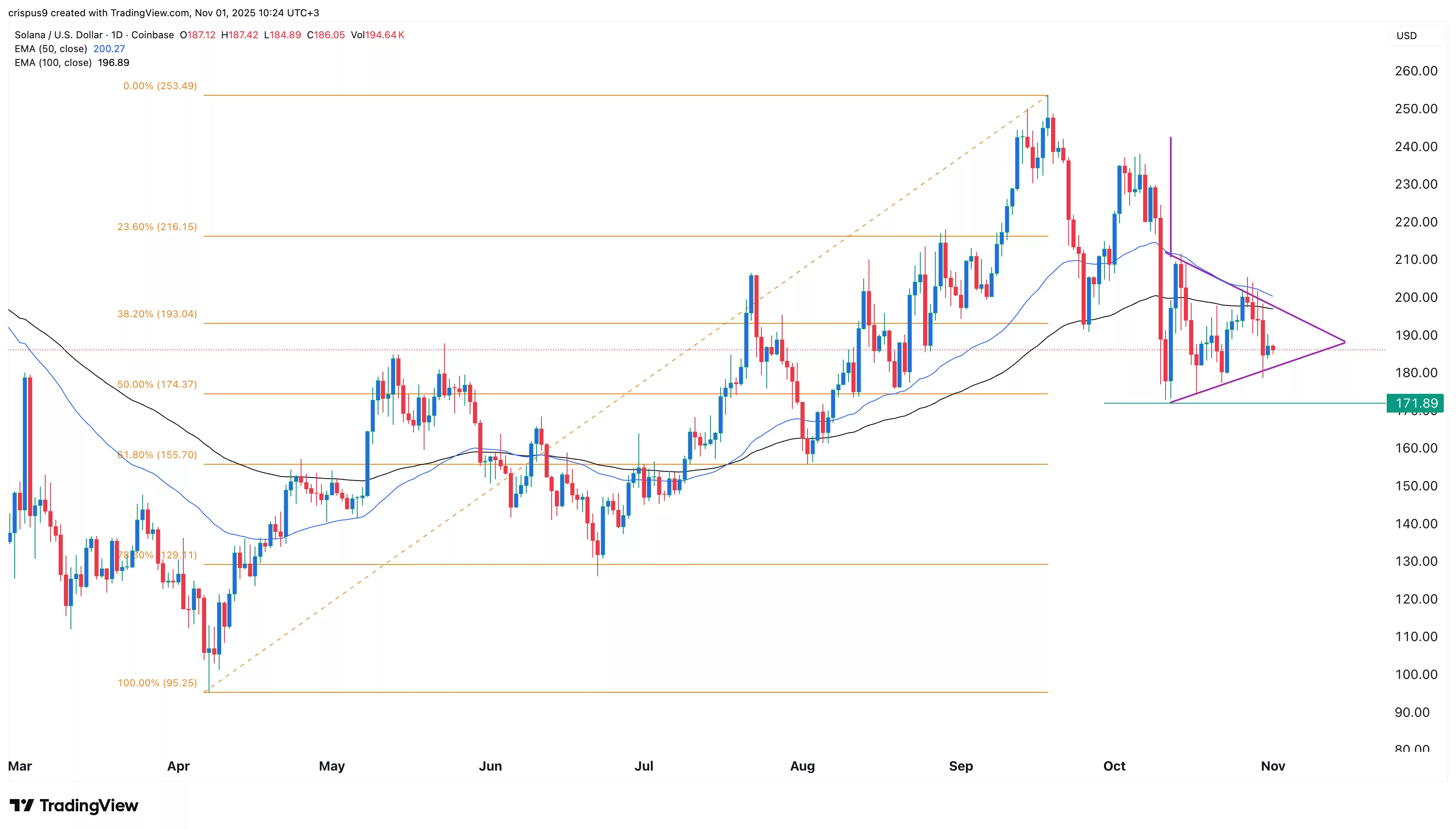 Solana (SOL) token was trading at $185 today, Nov. 1, much lower than the year-to-date high of nearly $300.