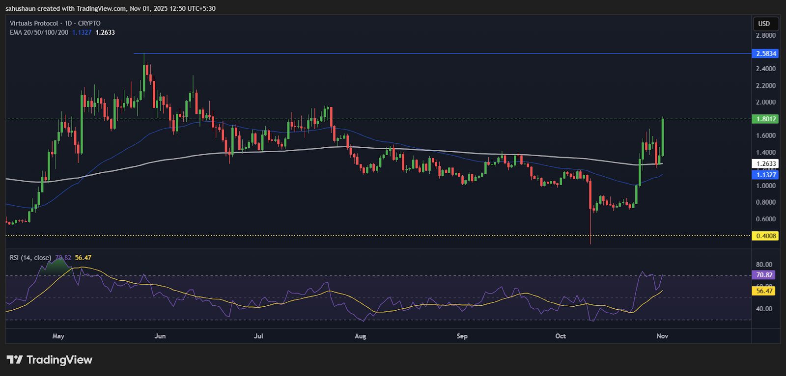 In AI plays, TAO rose 25.6% for the week, supported by Wednesday’s launch of the Bittensor Staked TAO ETP from Deutsche Digital Assets and Safello. Investors also priced Bittensor’s upcoming halving around Dec. 10, which will cut TAO mining rewards by 50%. VIRTUAL gained 40.6%, coinciding with Virtuals’ integration of Coinbase’s x402 protocol to enable stablecoin micropayments between agents and APIs.