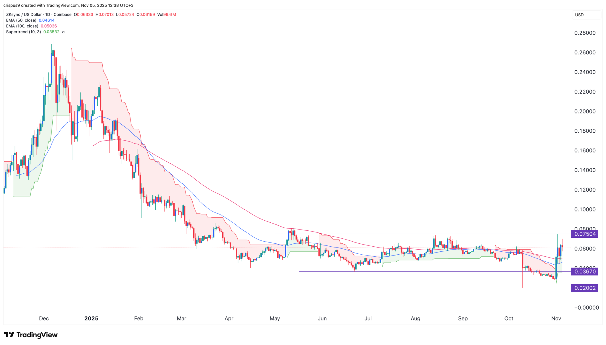 These actions have boosted the ZK crypto price, which moved from a low of $0.02 on October 10 to a high of $0.075.