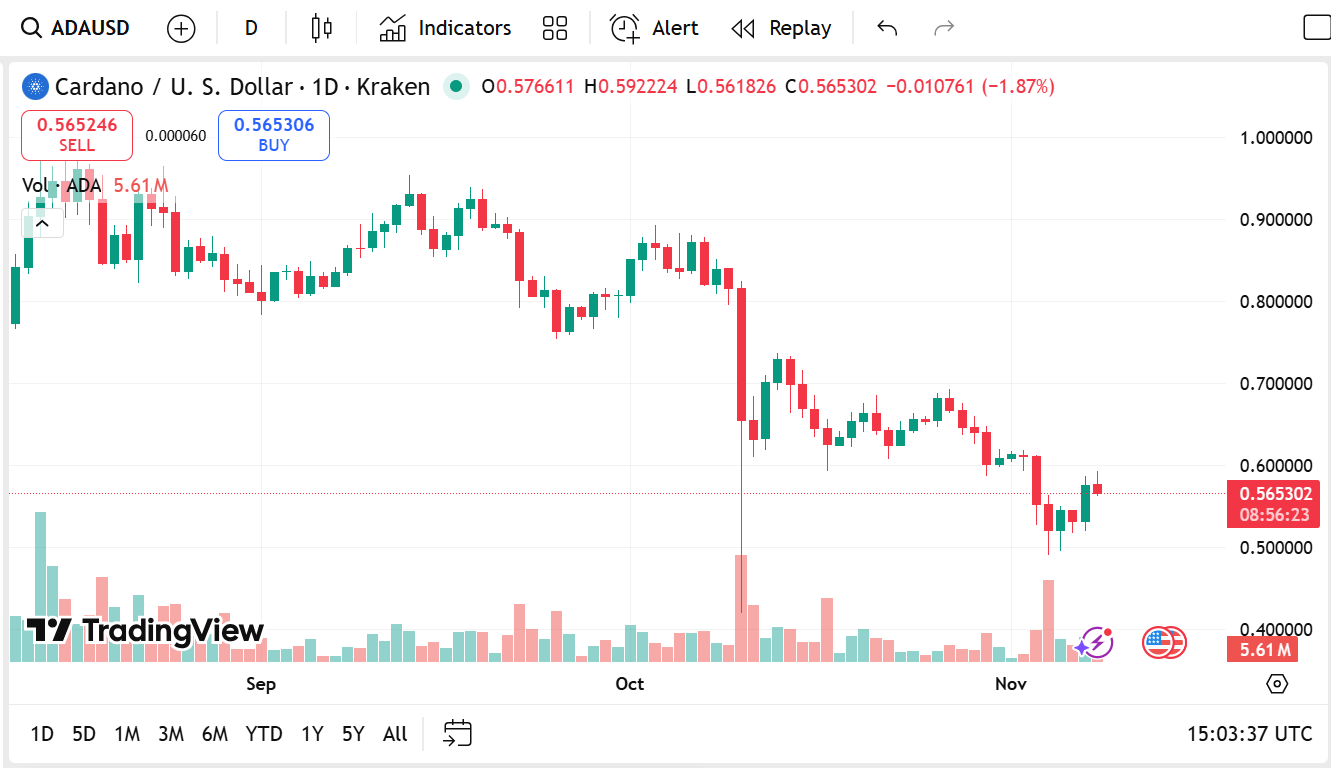 A clean move above $0.60could signal that buyers are taking control again. On the downside, if ADA falls below $0.52, it could retest $0.47, a strong support area from October.