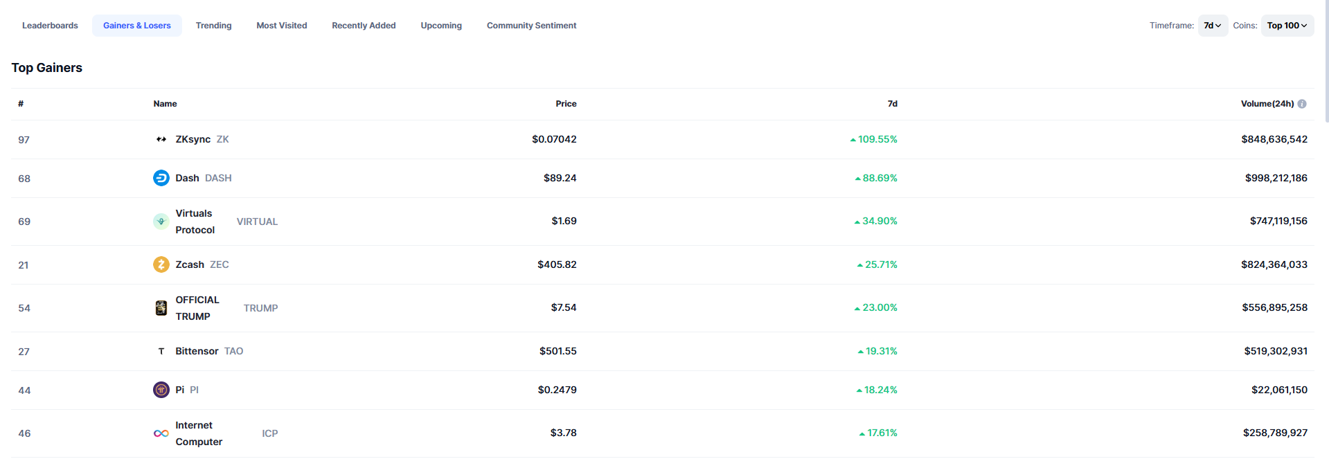 In crypto, Revenue tokens led gains yesterday (+5.48%), driven by strength in Ethereum Eco (+4.8%) and DeFi (+4.3%), while L1s (+4.8%) also posted solid advances. BTC bounced +2.2% after testing the $100,000 level, providing a tailwind across sectors. The only laggards were Gaming (-2.7%) and Modular Infrastructure (-2.6%), which saw profit-taking after recent outperformance.