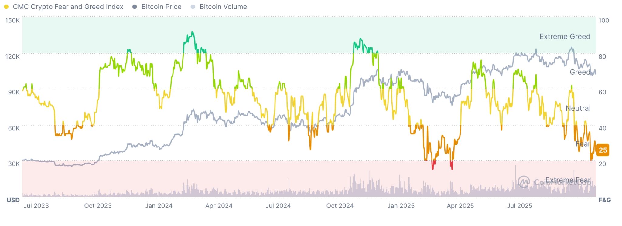 Cryptocurrency prices often underperform the market when the Fear and Greed Index is in the fear zone.