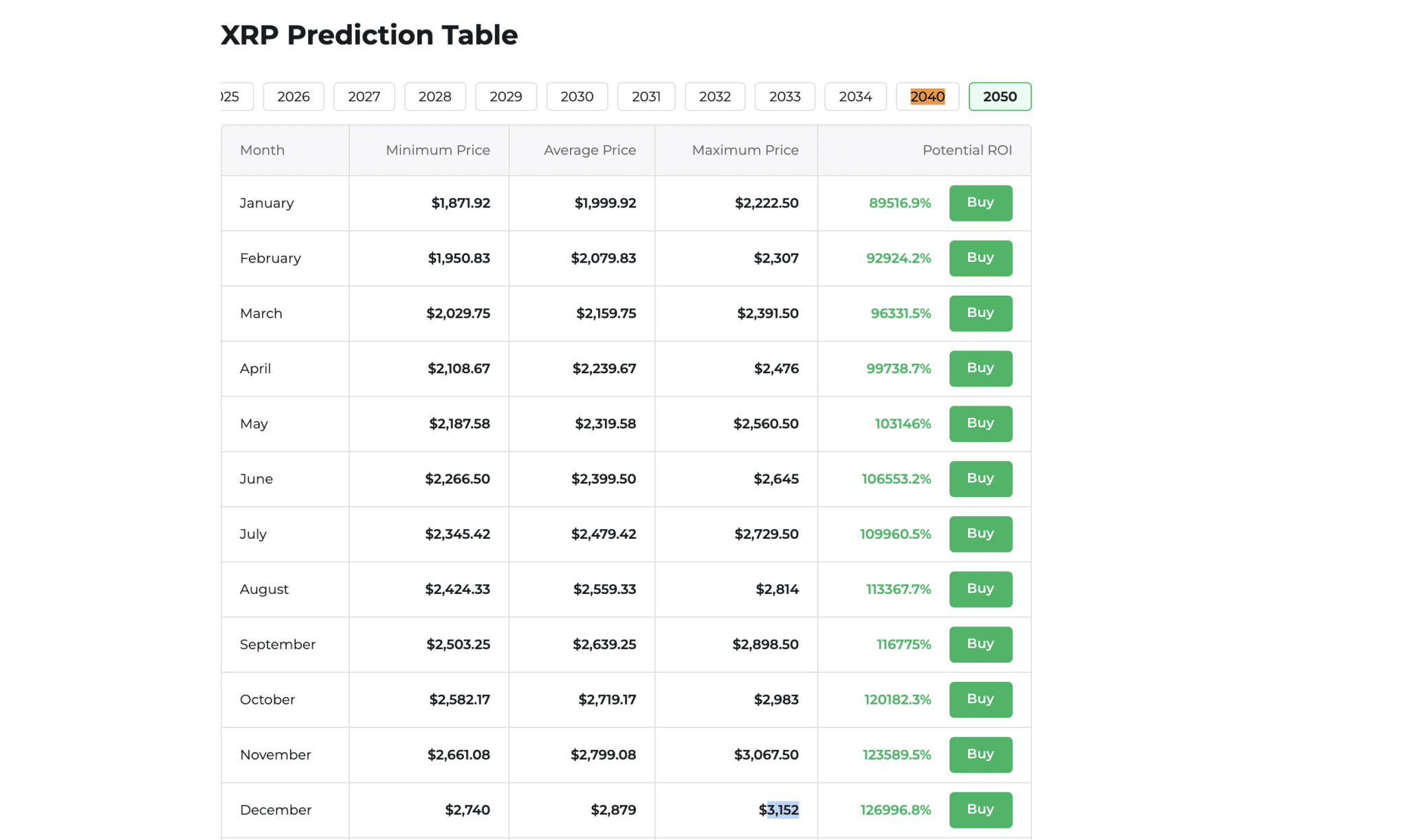 Interestingly, looking even further ahead to 2050, the model places XRP in an extraordinary range of $1,500 to $5,000, assuming it becomes a fundamental settlement layer for digital finance.