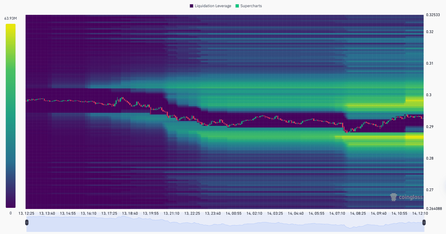 Specifically, the $0.298 area appears to be the nearest liquidity zone to watch.