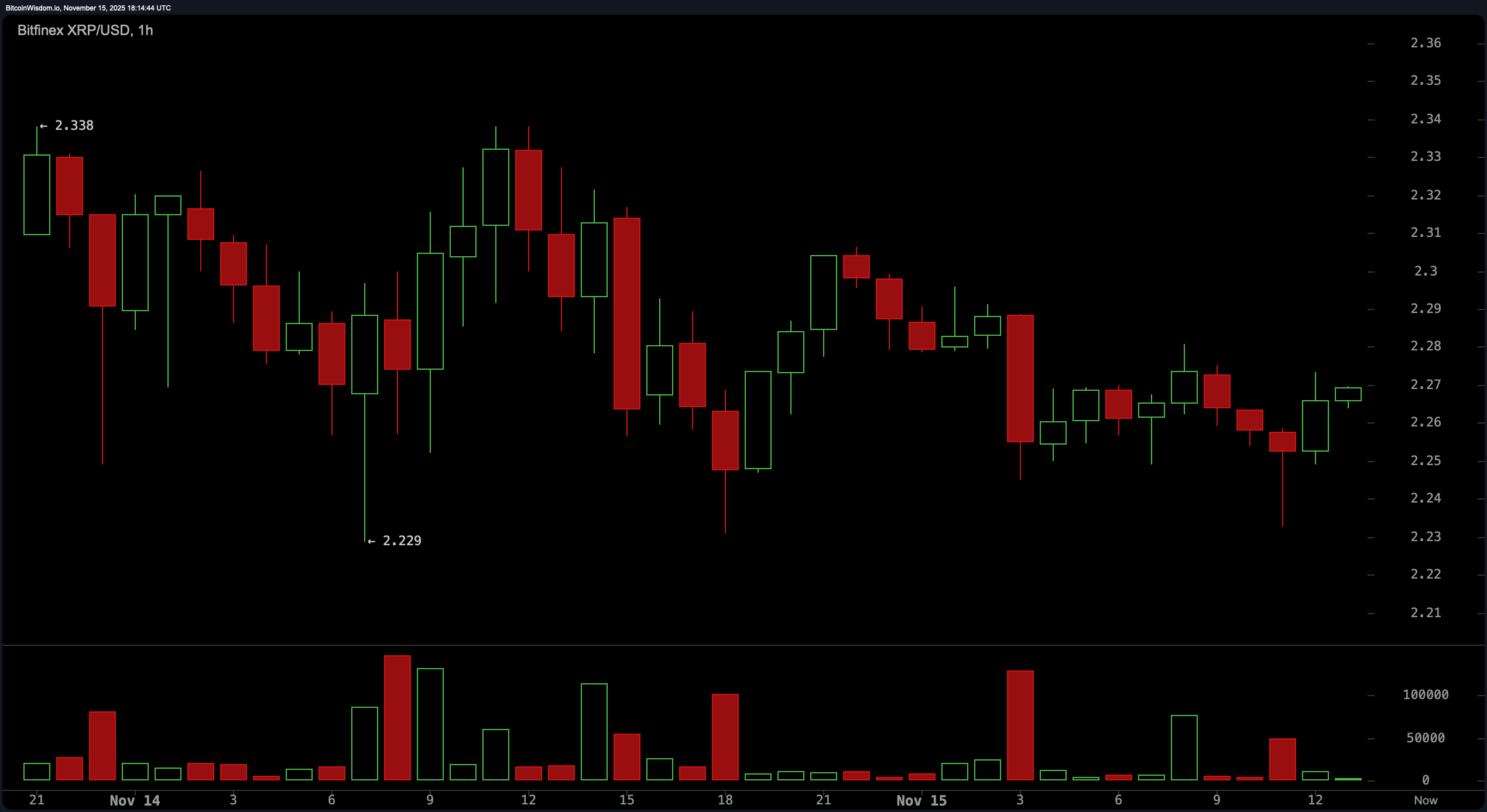 XRP is priced at $2.26 on Nov. 15, 2025, which plants it a stern 38% below its $3.65 all-time high. The digital asset holds a hefty $136 billion market capitalization, with a daily trading volume clocking in at $3.26 billion. Today’s intraday price action has been confined within a tight $2.23 to $2.32 band, a far cry from last week’s print of $2.57 per coin.