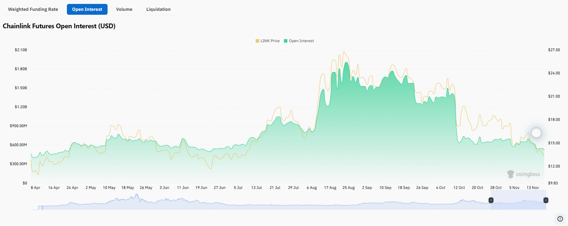 The Chainlink price is struggling to hold key support levels, with reduced futures open interest, raising questions about its next move.