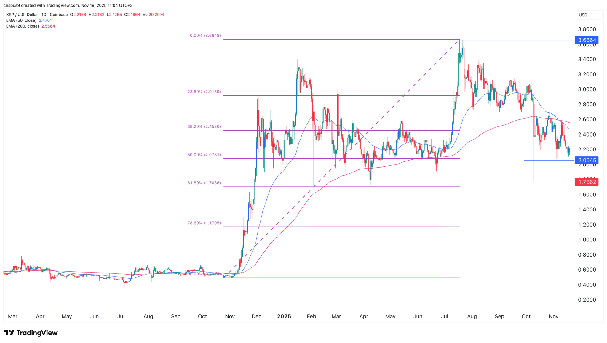 The main reason why the XRP price has underperformed despite this positive news is because of the ongoing crypto market crash that has affected all coins. Bitcoin has plunged from the all-time high off $126,300 to $90,000, while the market cap of all tokens slumped by over $1.2 trillion.