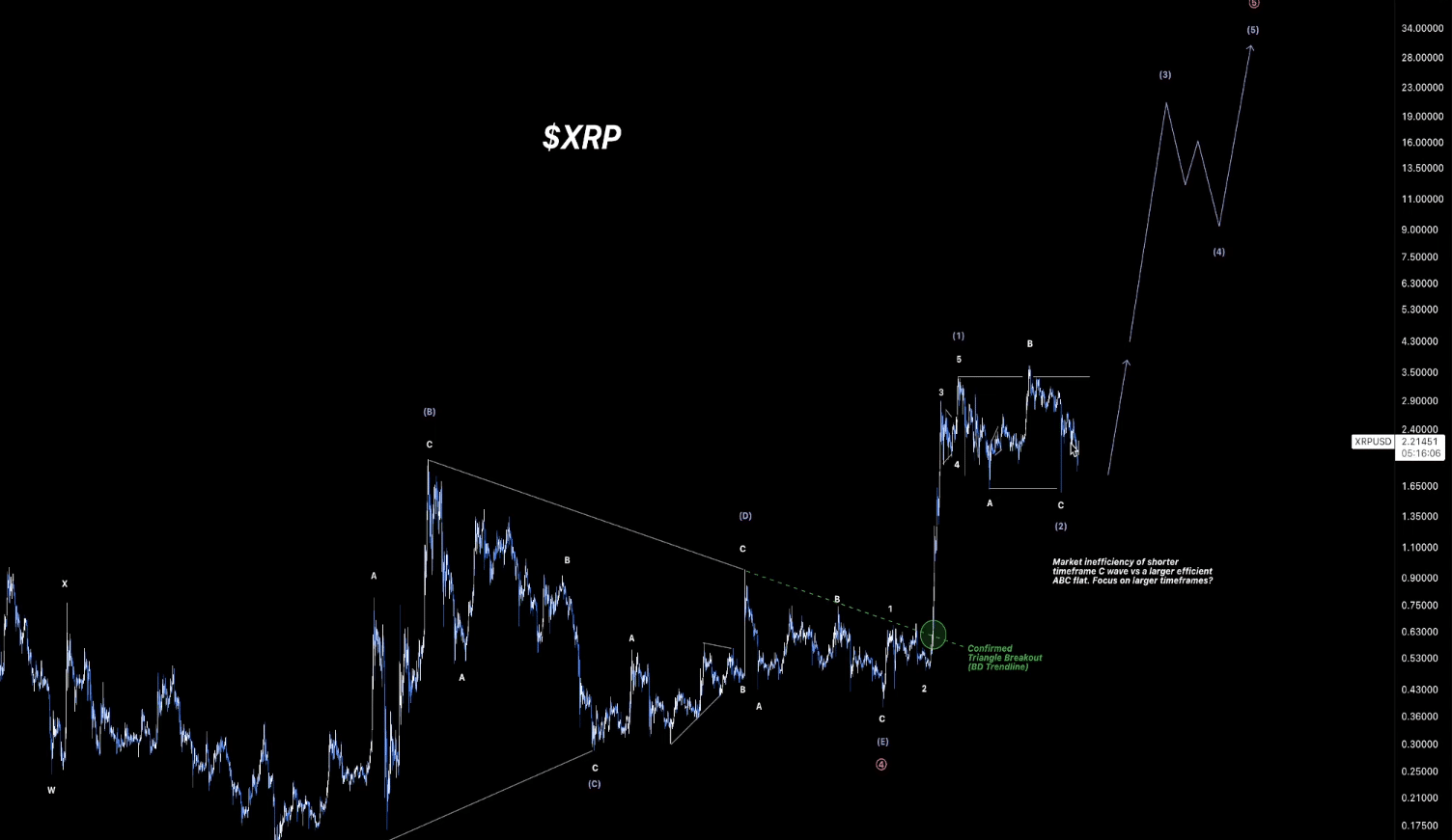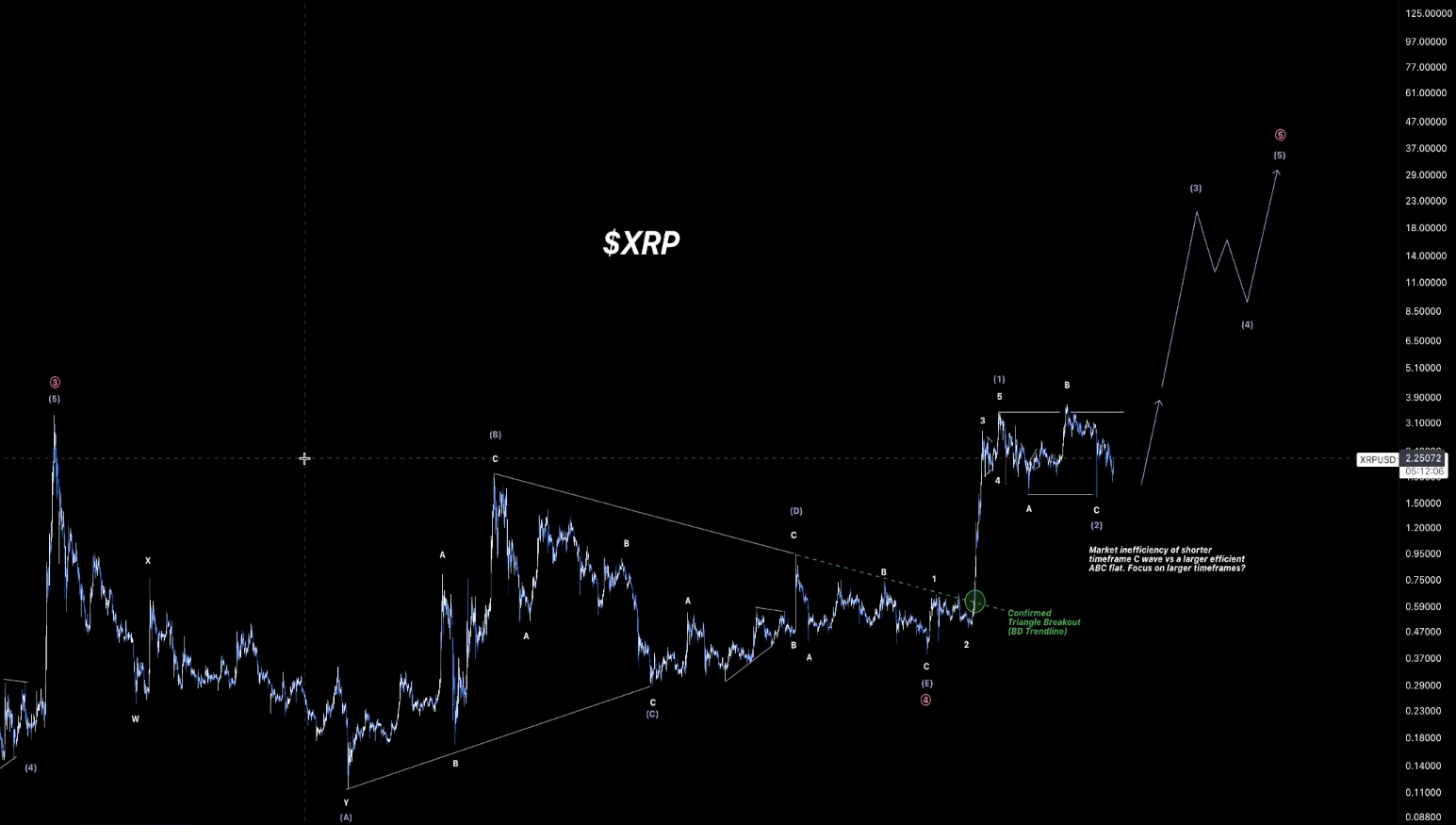 He said the last portion could even form an ending diagonal or combine into complex ABC or WXY structures. Such moves would also lead toward the $1.4 low. Notably, these setups often create several fake-outs, but the analyst believes this is part of how the market sets up for stronger moves.
