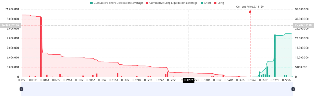 Historically, such sustained outflow phases have aligned with local bottoms and early trend reversals, supporting DOGE’s push toward the $0.17–$0.20 target zone. Liquidation data further strengthens the bullish setup.