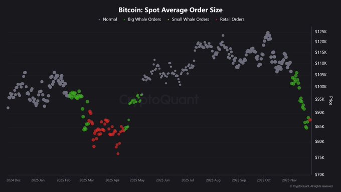 THE RETAIL BUY SIDE IS WAKING UP AGAIN Whale order flow has been steadily accumulating for days — but now retail has finally flipped too. Spot order sizes from both small and large wallets inflected at the same time, right as ETF outflows stabilized and began shifting back