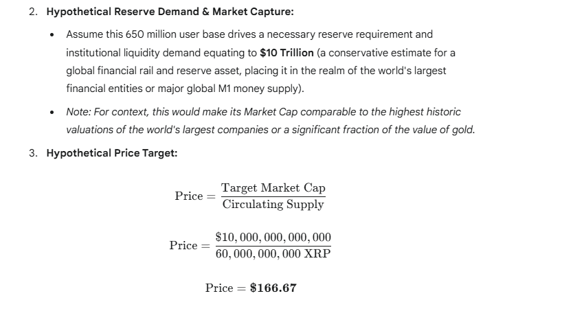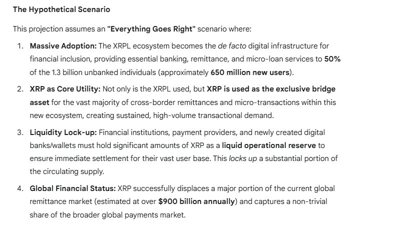 Gemini imagined an “everything goes right” scenario where the XRPL becomes the main global infrastructure for financial inclusion, serving half of the world’s unbanked, about 650 million new users.