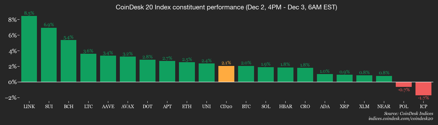 The action reflects revved up interest in the broader market, leading to several altcoins such as SUI, PUMP, ENA, LINK, PUMP and AAVE posting double-digit gains in the past 24 hours.​ The bullish mood is evident from the 6%-7% advances in the CoinDesk 20 (CD20) and CoinDesk 80 (CD80) indexes in the same period.
