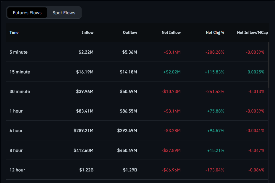 Meanwhile, the Solana futures flow data reveals mixed sentiment across different time frames. Over the past 4 hours, long positions increased by 94.57%, signaling renewed buying interest. However, the overall shift in long positions remains slightly negative, indicating some caution among traders.