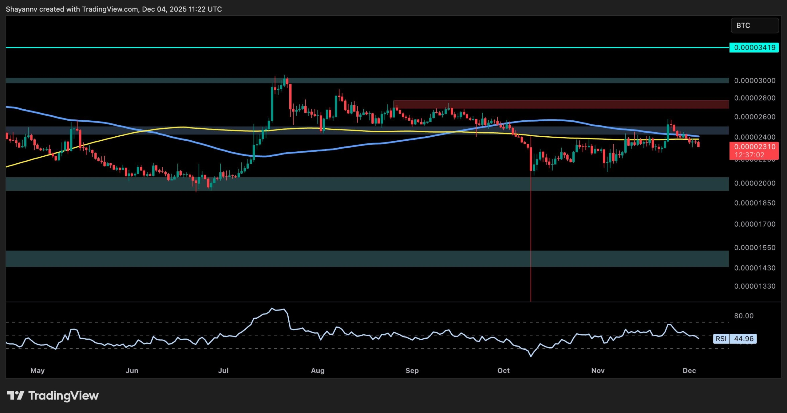 The failed push into the red supply zone around 2,600–2,800 sats indicates fading demand during rallies. With the RSI trending below 50 and no clear bullish divergence, momentum is lacking. If Bitcoin dominance continues to rise, XRP/BTC could test the 2,000 sats zone in the coming days, and even drop lower in the short term.