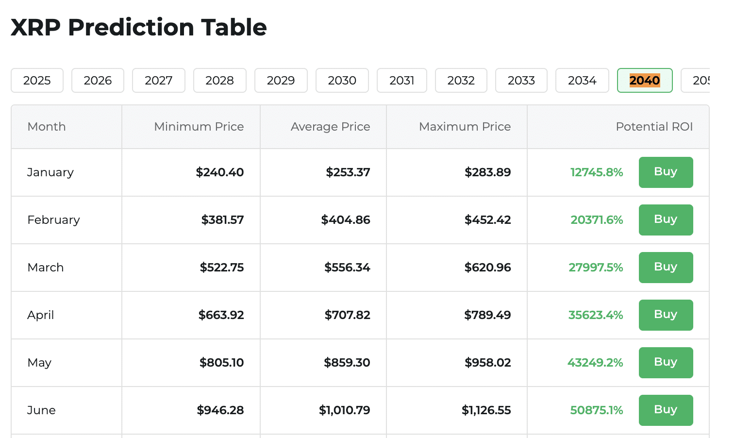 According to Changelly analysts, XRP may reach as high as $1,126 by June 2040, though this outlook does not depend on Bitcoin reaching $1 million.