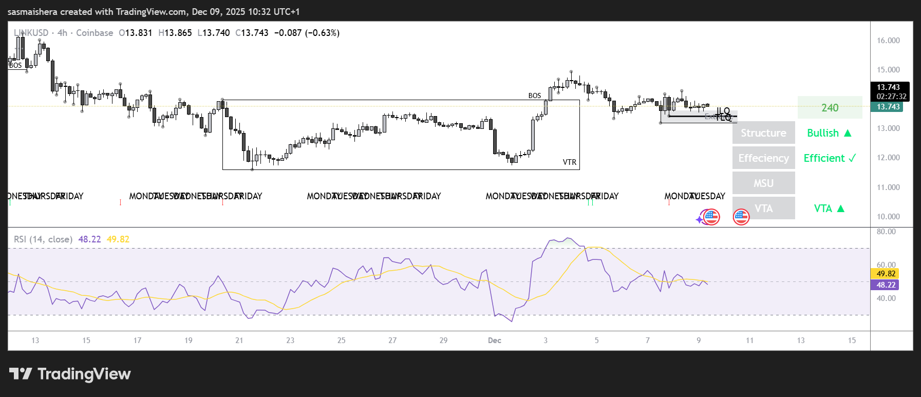 Chainlink (LINK) began the week trading above $14 but has dropped to the $13.8 level as the broader crypto market gave up some of its earlier gains.