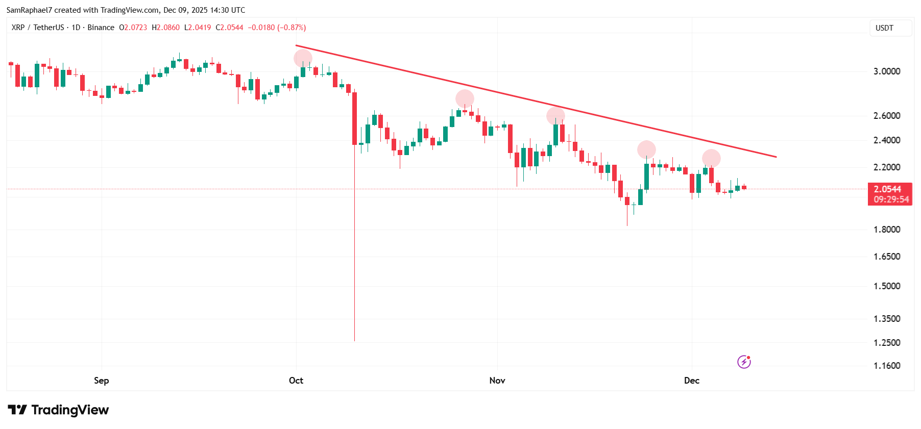 Specifically, when XRP staged a recovery in late September, it met a roadblock at the $3.09 resistance on Oct. 3. After a pullback, the next recovery met a roadblock at $2.69 on Oct. 27. From here, the next rebound effort faced a roadblock at $2.58 on Nov. 10. After this, the next roadblock stood at $2.28 on Nov. 24. Now, the latest roadblock came up at $2.21 on Dec. 4.