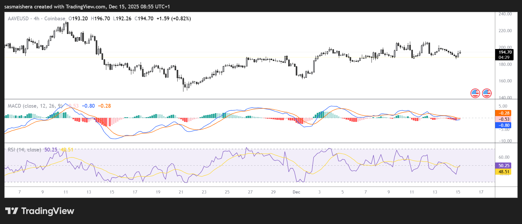 At press time, AAVE is trading at $194 per coin, up by less than 1% but could rally higher over the next few hours or days.