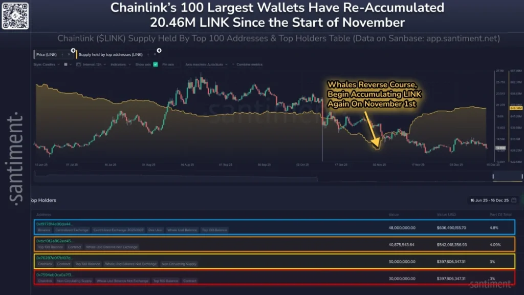 - Top 100 LINK wallets have added more than 20 million tokens since early November.