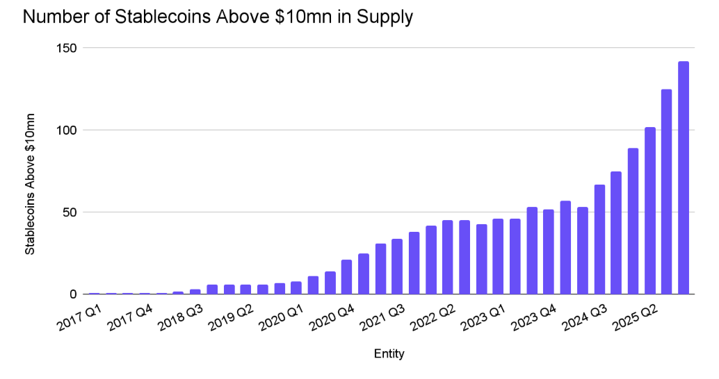 “The theme of this year was absolutely new entrants launching stablecoins as we saw the number of stablecoins above $10mn in supply increase from 75 to 142,” Van Aken said.