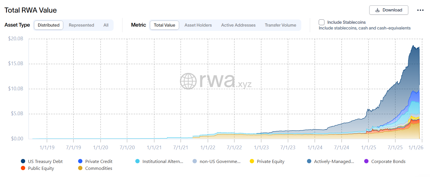Before diving into the topic, it’s worth noting that RWA.xyz, whose data we’ll use in the article, changed its methodology in 2025. As of press time, assets that can be transferred between user wallets are counted as “distributed,” while platform-locked tokens are classified as “represented.”