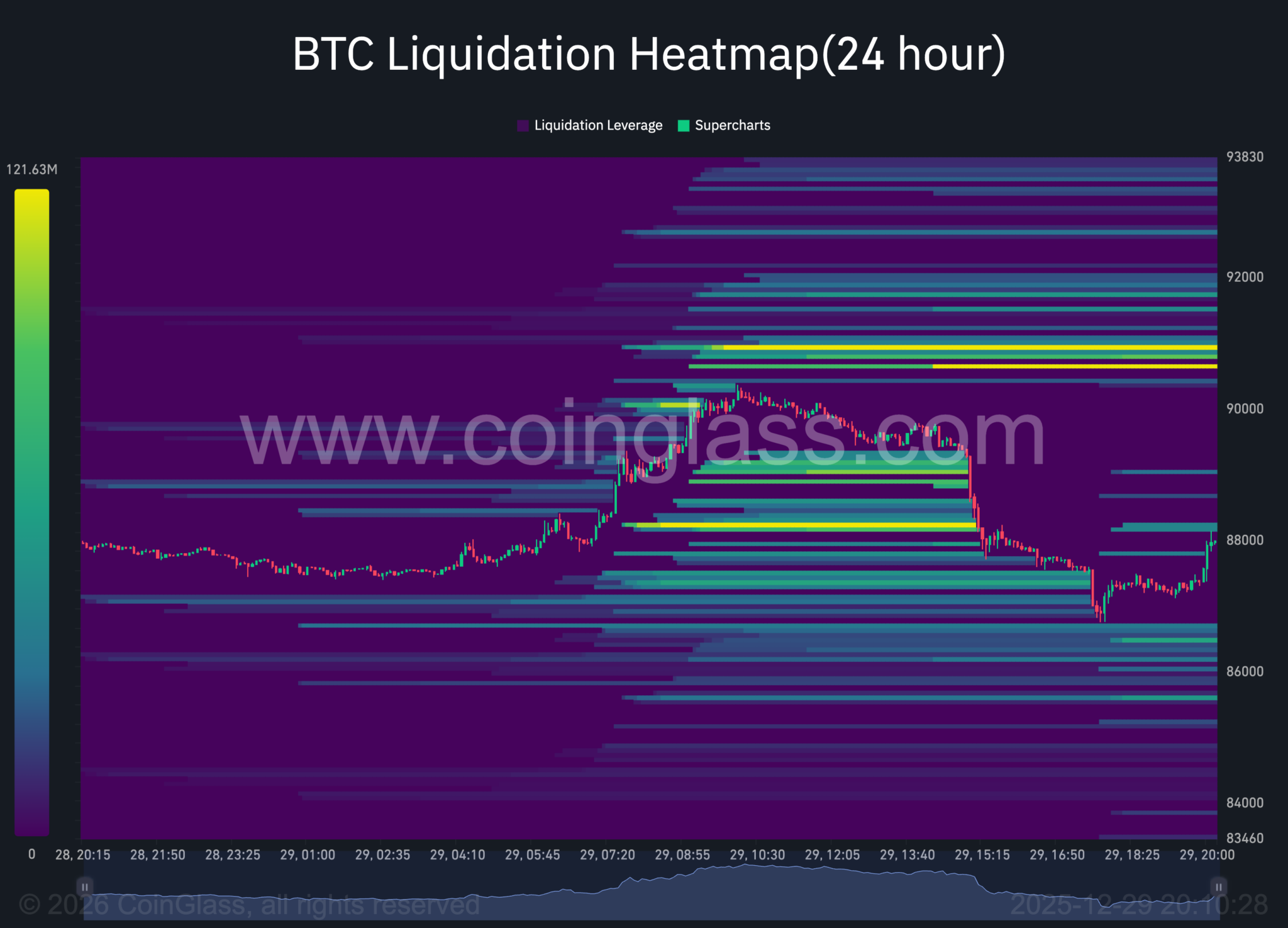 As the price breached $90,000, it triggered approximately $918 million in short-liquidation intensity, providing the forced buying momentum required to briefly clear the psychological barrier.
