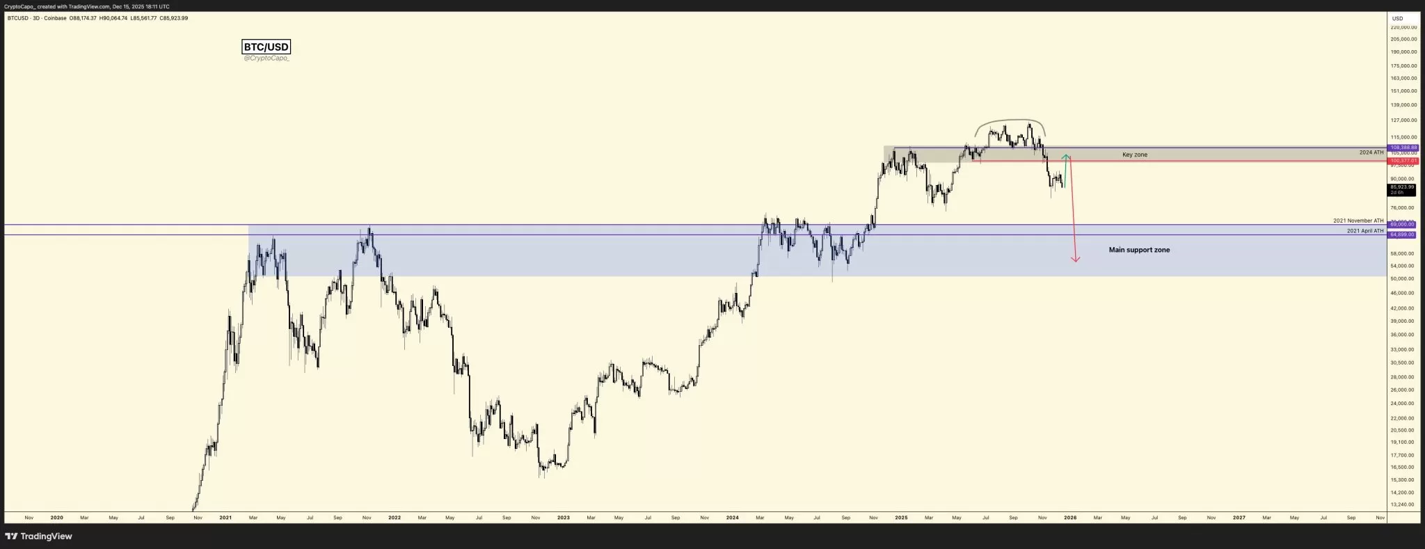 - il Capo of Crypto: Il Capo, a well-known analyst in the cryptocurrency world, expects the Bitcoin price to first rise above $100,000, and then pull back to what he calls its main support point, between $50,000 and $69,000.