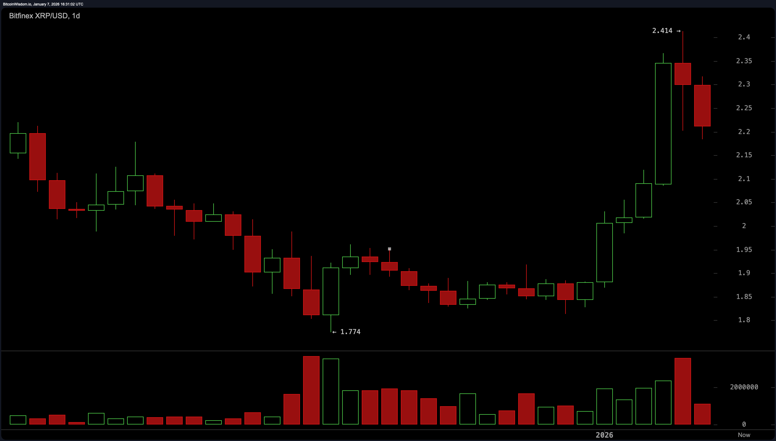 XRP is trading between $2.19 to $2.21 on Jan. 7, 2026, giving the token a market cap of $134 billion, a 24-hour trading volume of $5.97 billion and an intraday range between $2.19 and $2.32. Liquidity remains visibly strong, volatility is very much alive, and the market is behaving like it just finished a sprint and is pretending it does not need a glass of water.