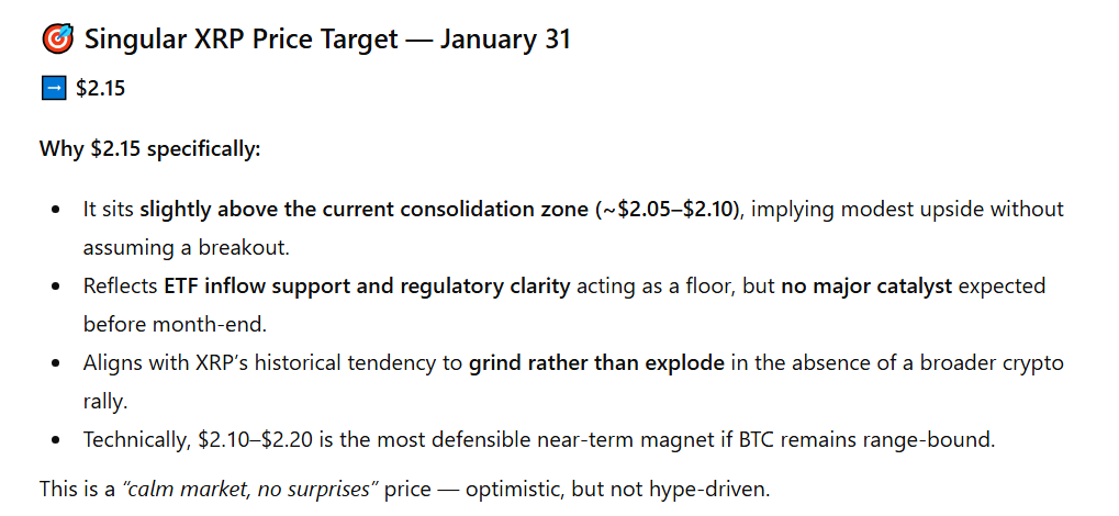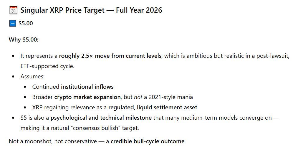 According to ChatGPT, such a level fits best into a model that assumes no major shocks and is in line with what the LLM described as XRP’s tendency to ‘grind rather than explode.’