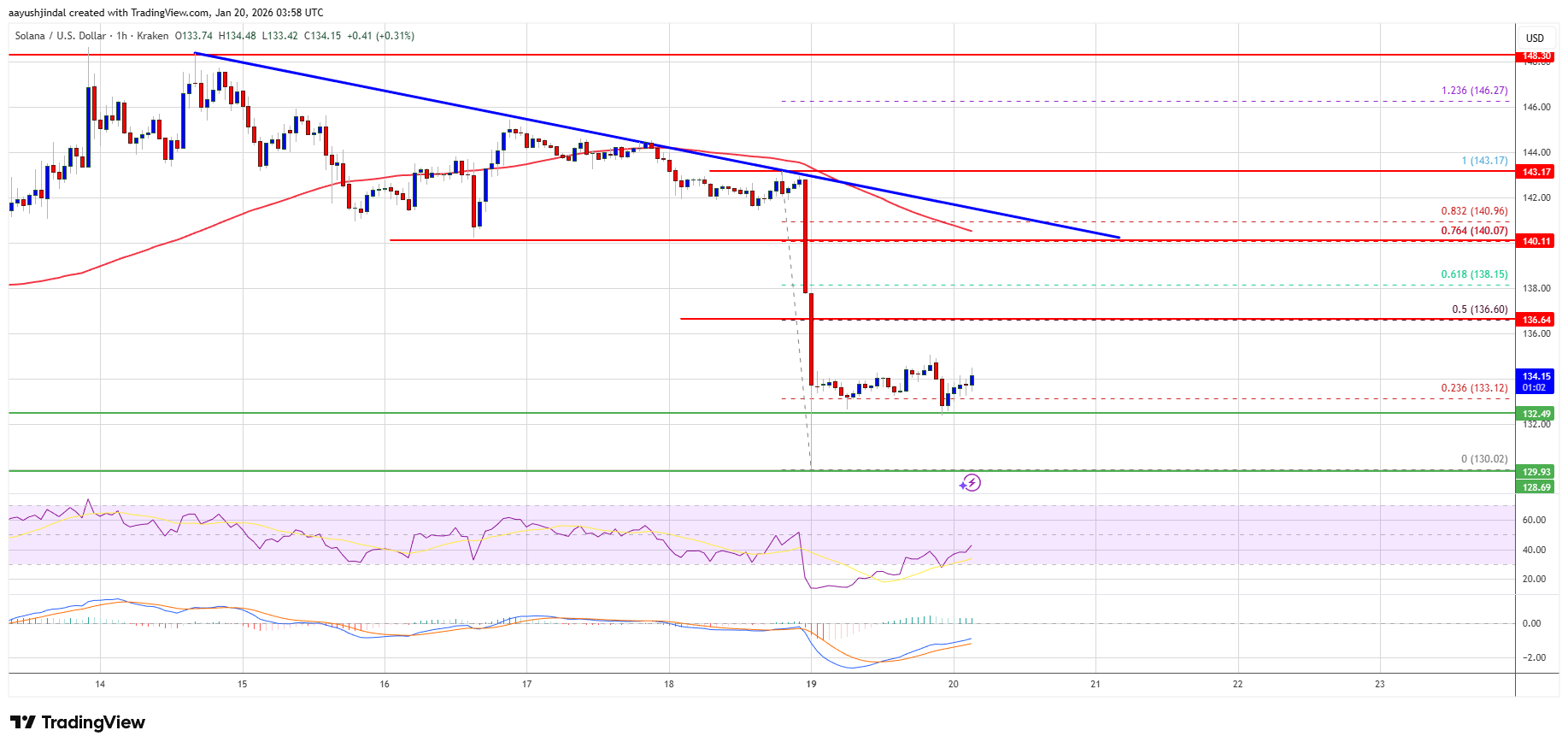 If SOL fails to rise above the $136 resistance, it could continue to move down. Initial support on the downside is near the $132 zone. The first major support is near the $130 level.