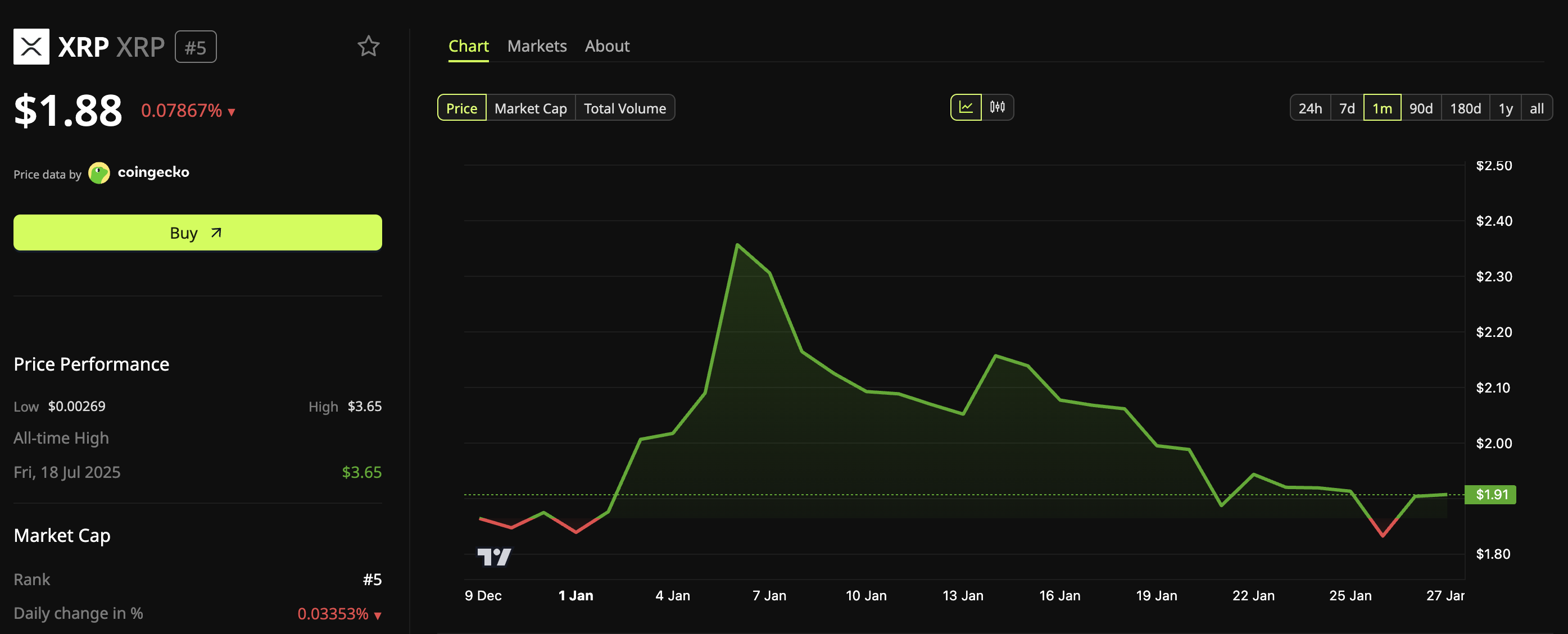 BeInCrypto Markets data showed that XRP started 2026 strongly, climbing more than 27% in the first five days of January. However, the momentum quickly faded, and the altcoin changed course, giving back most of its early gains.