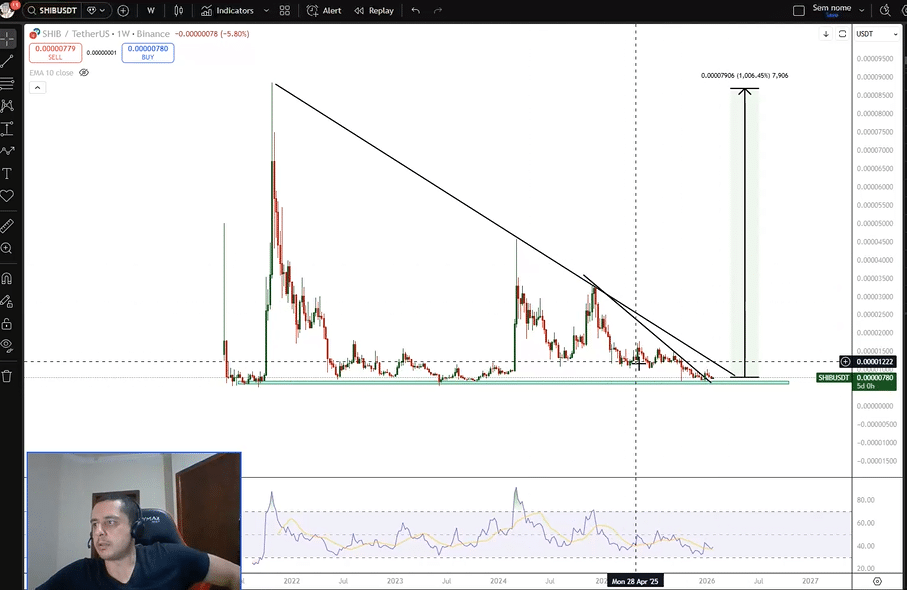 If Shiba Inu mirrors this move, it could reach price levels beyond the current standing. According to the analyst, it could retest its 2021 peak of $0.0000885, representing an over 1,000% move.