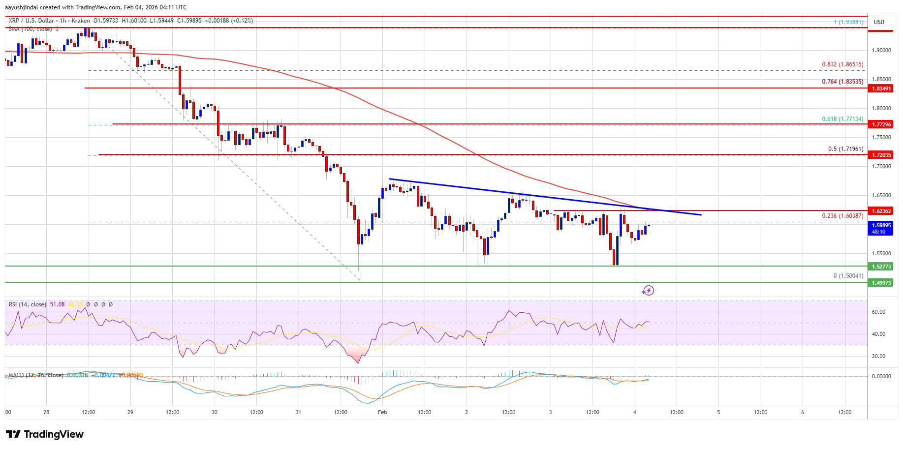 $XRP price extended losses and traded below $1.5320. The price is now attempting to recover but faces hurdles near $1.6250 and $1.650.