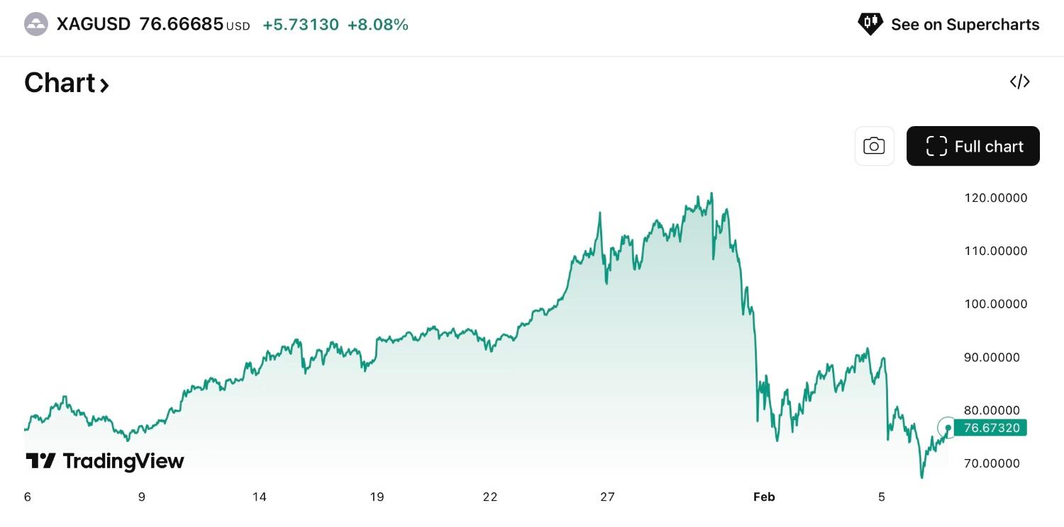 While its weekly losses are still hanging over it, silver is again going up on Friday, February 6, gaining more than 8% on the daily chart.