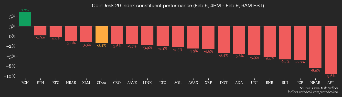 Even so, it's outperforming the wider market, which saw the CoinDesk 20 (CD20) index drop 13.5% over 24 hours and 13.7% in a week.