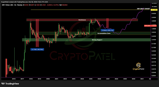 Recent price action, most especially the crash in early February, has shown that the market-wide sentiment needed for $XRP to trade at $10 might not actually be there yet. According to Crypto Patel, the path to $10 may not be as linear as many expect.