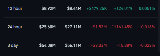 CoinGlass data show that $ADA spot holders are moving their funds off exchanges, which reduces selling pressure. In the past three days, spot inflows stand at $54.08 million, while outflows are $56.11 million.