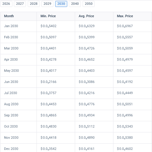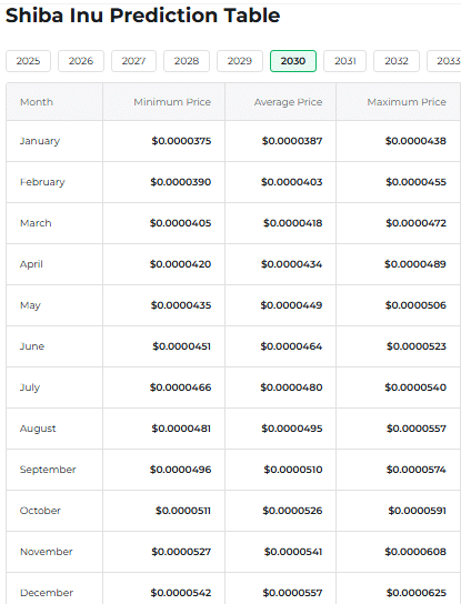 $SHIB’s return by 2030 will ultimately depend on how far its price appreciates over the next four years. For example, analysts at Changelly project a maximum price of $0.0000625 by 2030. At that level, a 403.9 million $SHIB portfolio would be worth about $25,243, generating an estimated profit of roughly $22,700 on a $2,500 investment.